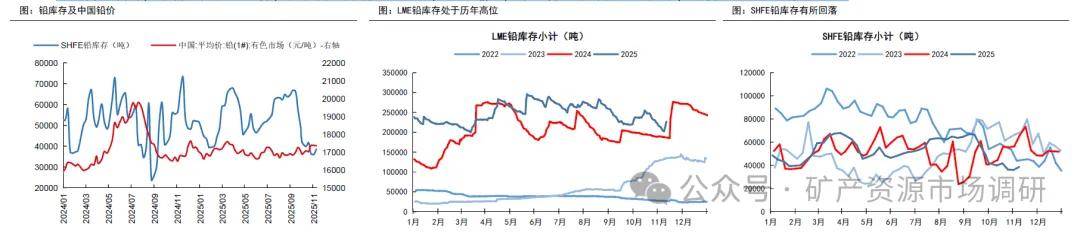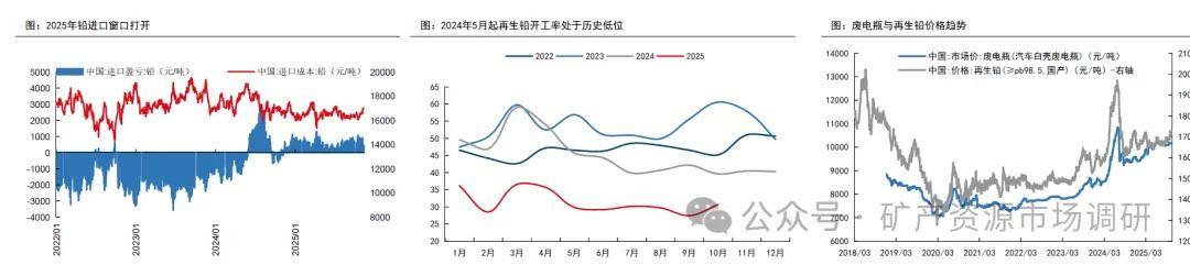 u 供给:2025年原生铅无产能增量,产量低增速;再生铅方面,国内新增270万吨废电瓶年处理能力,废料争夺加剧。