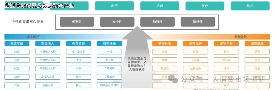 随着养宠人群的不断扩大和消费观念的多样化,不同宠主在年龄、收入水平、生活方式、教育背景等方面的差异,以及宠物种类、遗传、年龄、性格、健康状况等差异的,导致消费者对宠物服务的需求日益个性化和差异化,市场对的期待已远远超越了传统较为单一的洗澡、看病等基础服务,转向了高度个性化与定制化的服务模式。
