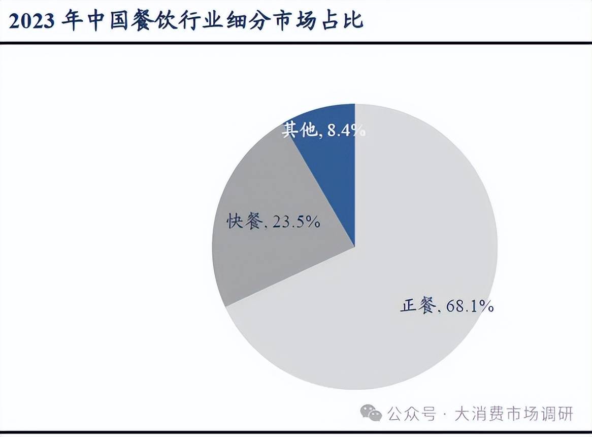 餐饮行业涵盖多种业态,包括快餐、正餐、休闲(包含咖啡、茶饮、酒馆)等,满足不同消费场景需求。2024年中国餐饮市场规模达5.6万亿元,截至当年8月餐饮企业存量家数1634万家。餐饮行业业态高度细分,形成了覆盖日常消费全场景的多元化格局。根据中商产业研究院数据,按场景分,2023年餐饮细分市场正餐、快餐及其他休闲餐饮类型(含咖啡茶饮、烘焙、小酒馆等)分别占比68.1%、23.5%和8.4%。正餐为最主要板块,快餐市场以标准化、便捷性为核心,而茶饮咖啡、烘焙等休闲餐饮则随现制食饮趋势高速增长。