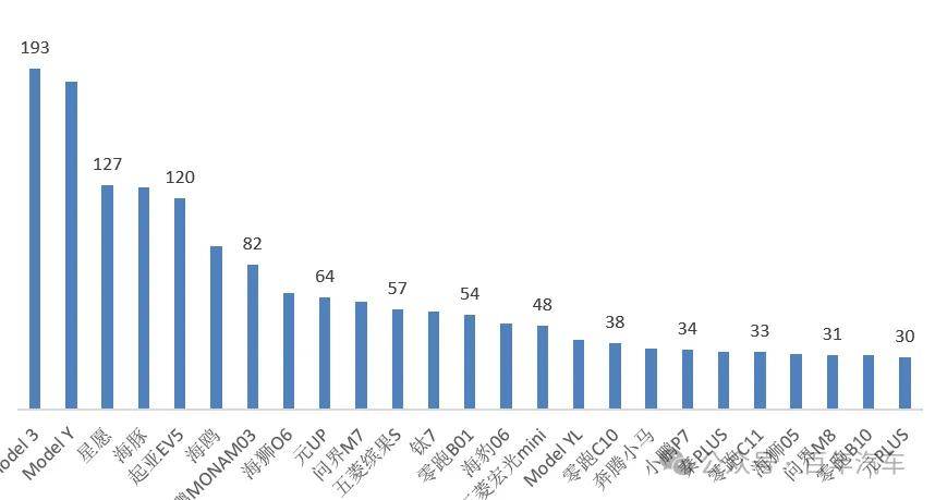 3、11月份新能源汽车销量——车型结构(排名前20车型)