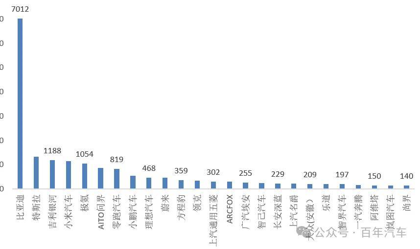 4、11月份新能源汽车销量——品牌结构(排名前20品牌)