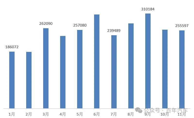 1、1-11月新能源汽车销量走势