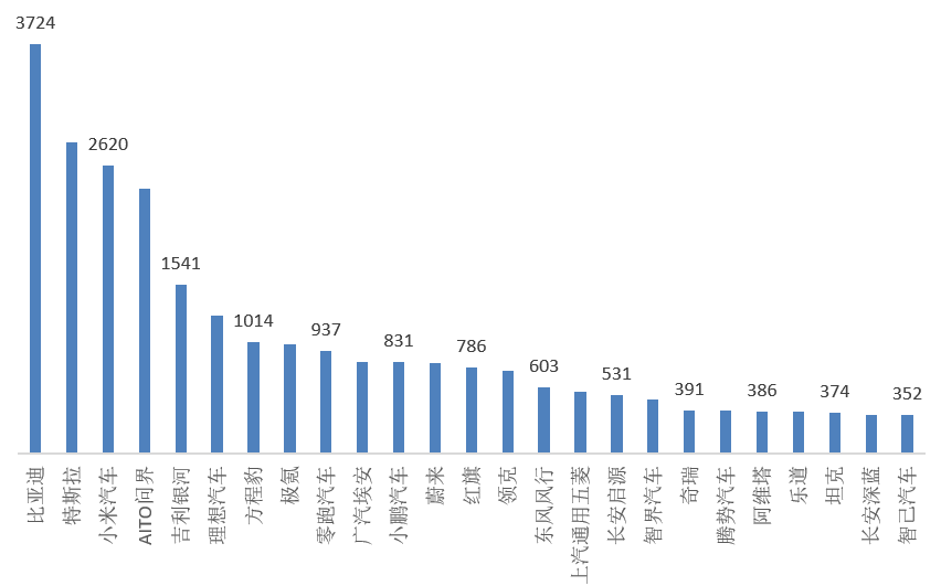 4、11月份新能源汽车销量——品牌结构(排名前20品牌)