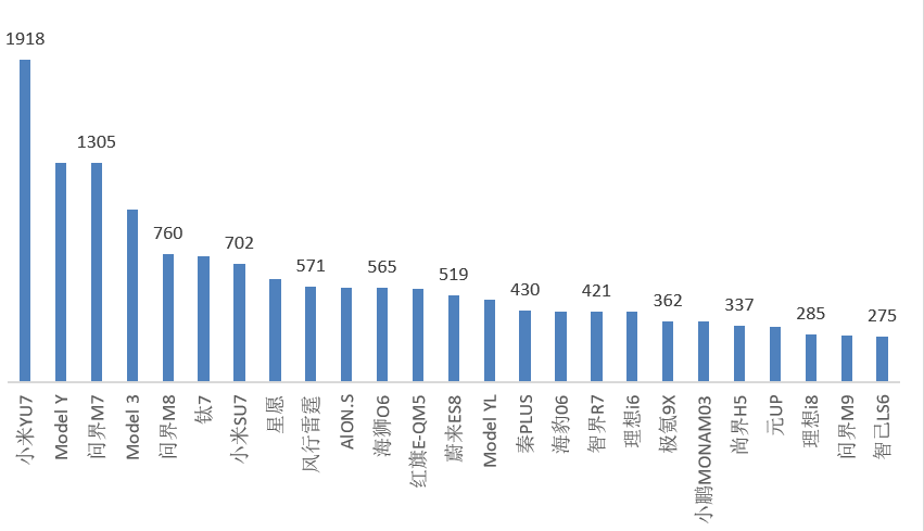3、11月份新能源汽车销量——车型结构(排名前20车型)