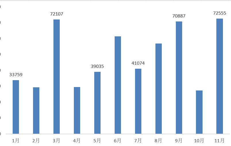 1、1-11月新能源汽车销量走势