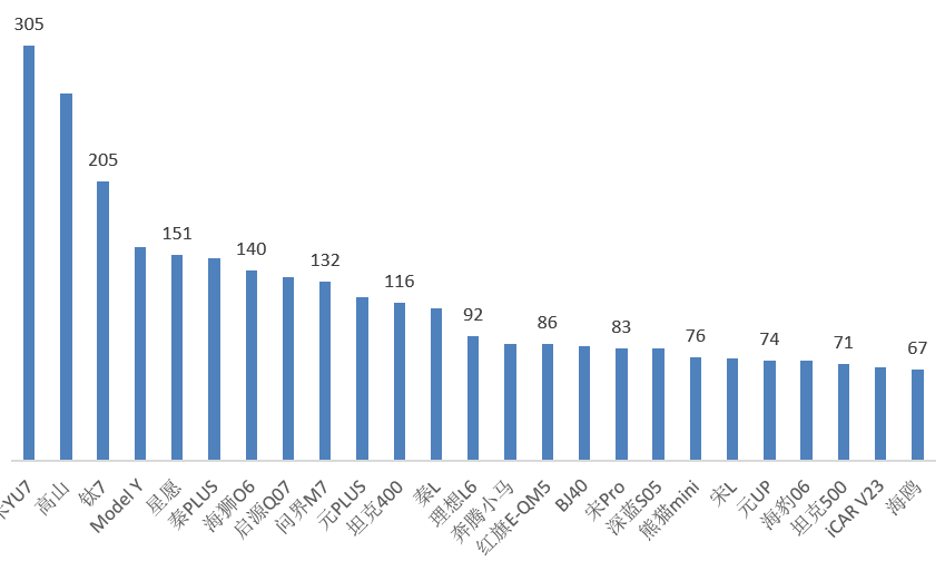 3、11月份新能源汽车销量——车型结构(排名前20车型)