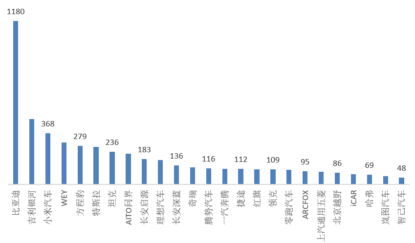 4、11月份新能源汽车销量——品牌结构(排名前20品牌)