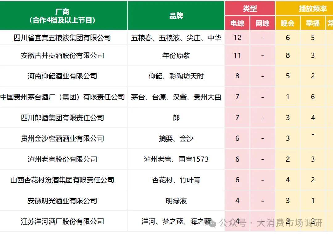 白酒综艺-TOP10客户:仅投电综,五粮液、古井多冠名合作