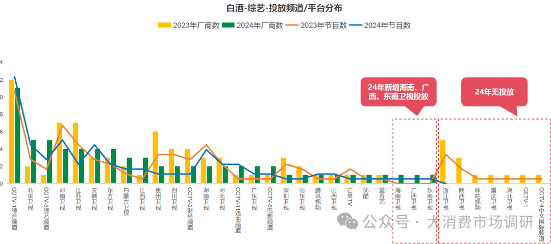 白酒综艺-央1、北京、央3合作较多,新增3个频道投放