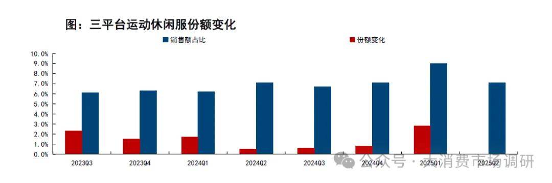 ① 运动休闲服2025Q2销售额占比7.1%,同比变动0个百分点