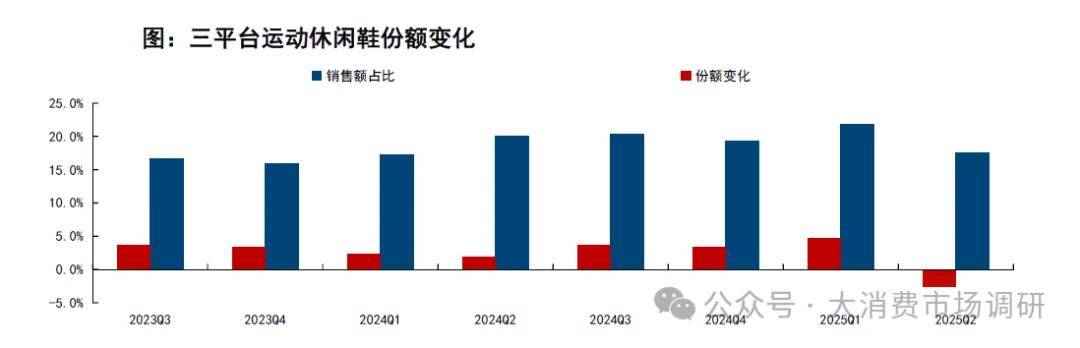 ① 运动休闲鞋2025Q2销售额占比17.5%,同比变动-2.6个百分点;