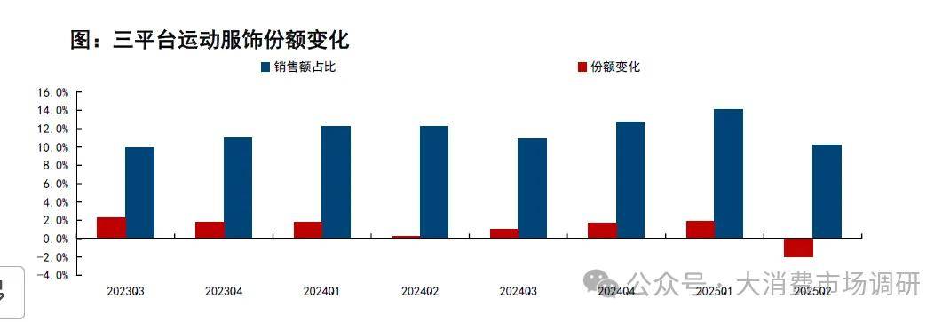 ① 运动服饰2025Q2销售额占比10.2%,同比变动-2个百分点;
