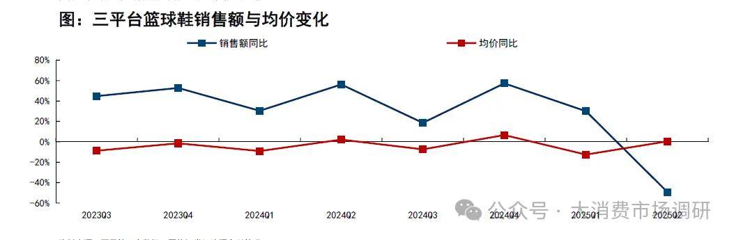 ② 篮球鞋2025Q2销售额(2.6亿)同比-49.3%,均价(625元)同比+0.5%