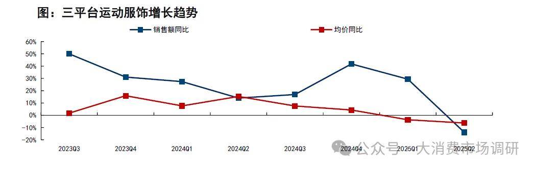 ② 运动服饰2025Q2销售额(34亿)同比-13.9%,均价(402元)同比-6.3%。