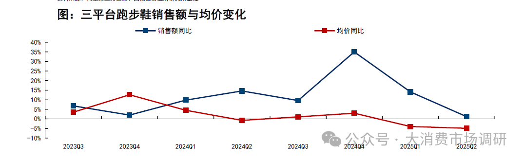 ② 跑步鞋2025Q2销售额(7.4亿)同比+1.2%,均价(504元)同比-4.9%。