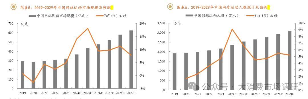 包含服饰及装备等 将达至 367 5 亿元 预计 2029 年可达至 624 9 亿元 。 根据艾媒数据中心预测 预计 2024 年我国网球运动人数将达至 2 361