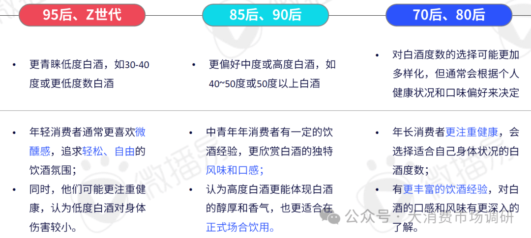 偏好习惯化:青年一代看重低度酒的微醺感和氛围感,年长人群注重品质与口感
