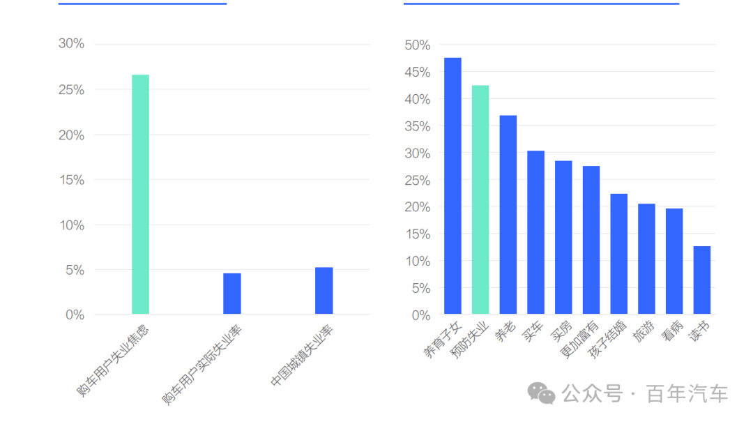 2025上半年,中国购车家庭的实际失业率仅为4.55%,甚至优于国家统计局公布的城镇居民的失业率,但购车用户的失业焦虑高达26.56%,两大非常矛盾的数据放在一起,让我们一头雾水。另外,中国购车家庭之所以积极存款,除了养育子女,预防失业堂而皇之位居第二,占比超40%;
