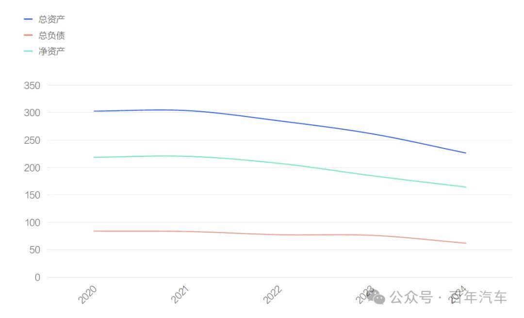 由于资产下滑幅度大于负债,2020-2024年中国购车家庭的净资产也下滑,由2020年218万元降至2024年164万元,购车家庭的资产泡沫被大幅挤掉。