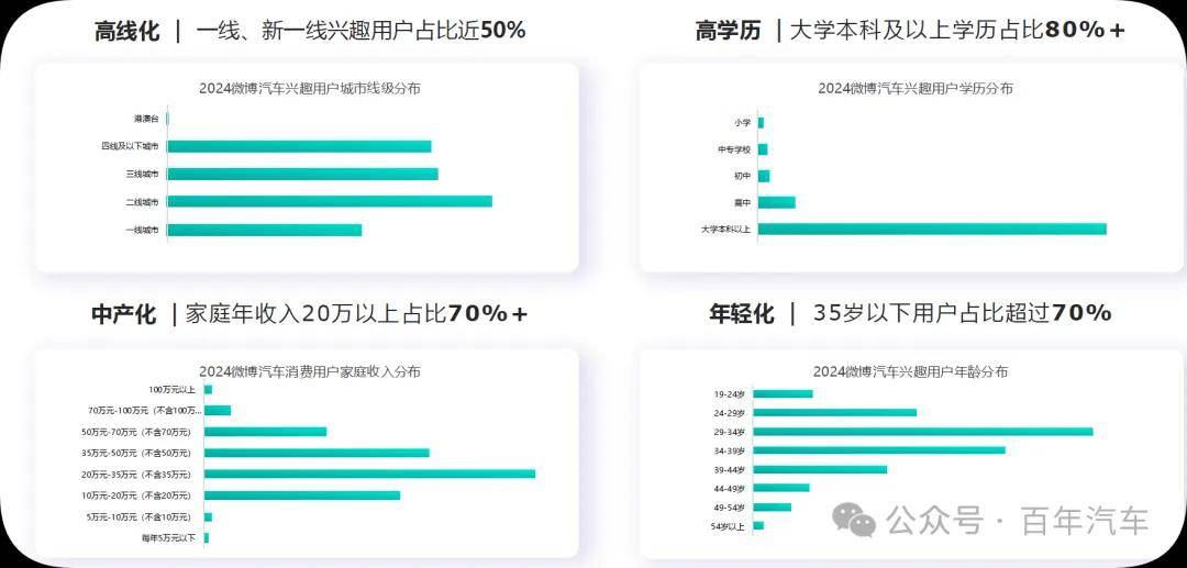 汽车兴趣人群在微博呈现高线化、高学历、中产化、年轻化四大特征