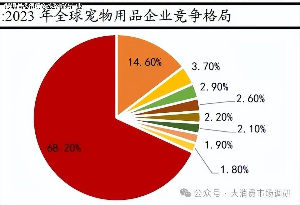 由于宠物用品覆盖面广、细分品类多,全球宠物用品市场的竞争格局较为分散,宠物用品的领先企业仍以国际品牌为主。其中,雀巢公司占据3.70%的市场份额,礼来动保、中央花园和宠物公司凭借高质量的宠物用品同样跻身前列,分别占据2.90%、2.60%的市场份额。