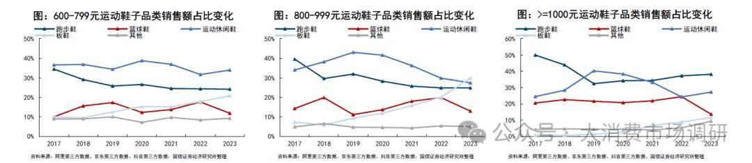 结论4:高价市场跑鞋对运动休闲鞋的替代明显,板鞋、篮球鞋份额提升也较为明显