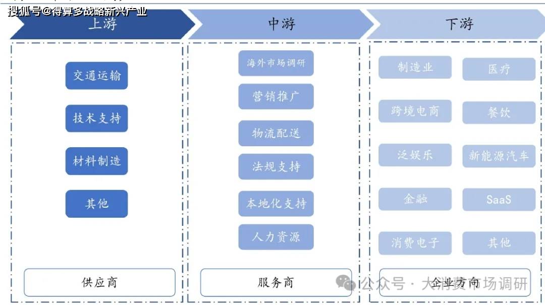 伴随产品力与品牌力升级,中国企业步入出海新阶段。从象征中国产品力的新能源产品,到从品牌力出发国际化布局的制造业,随着国内各行业产品以及技术的不断成熟,中国企业已经实现了从劳动力到产品再到品牌的转化。企业通过自身品牌力的延伸加大消费者对于品牌的辨识度,透过产品进行中华产品文化输出。根据艾媒咨询数据显示,大型企业有29.5%已实施出海,19.9%有出海计划。在已实施出海布局的企业中,中、小、微企业的占比分别为39.4%/17.5%/13.6%。中国企业出海业务正从向欧美等成熟地区输出传统业务,逐步扩散到向东南亚、中东等区域输出新兴业务。中国企业通过对于产品与品牌的海外持续输出,不断实现全球化供应链布局新阶段。