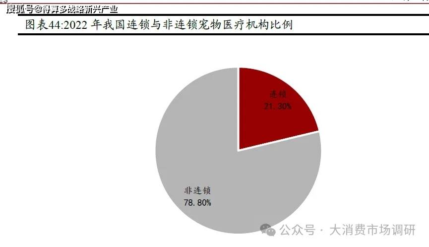 当前我国宠物医院的连锁化率还比较低,连锁化比例提升是未来发展趋势。目前我国宠物医疗机构连锁化率为21.3%,非连锁机构仍占据了主流。宠物连锁医疗机构具备规模效应、品牌效应、以及组织管理效应等优势,随着宠物医疗行业的快速发展,越来越多的资本介入这一领域,有望带来行业的整合和连锁化率的提升。