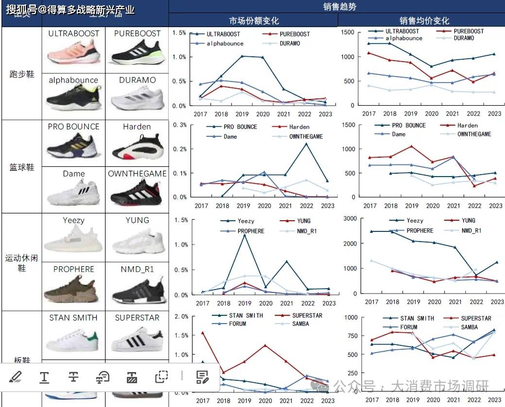 阿迪达斯:相比疫情前份额下降明显,主要受高价格段运动休闲鞋及跑鞋拖累,板鞋表现较为稳定