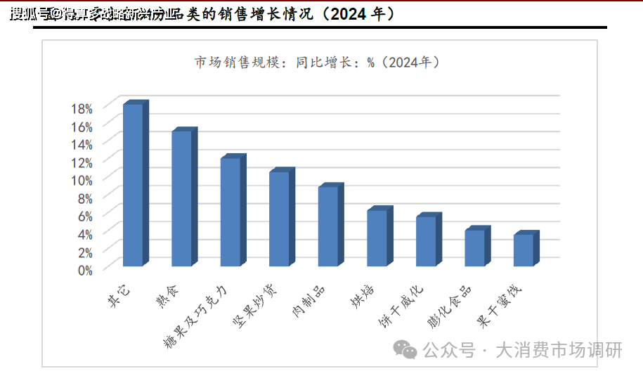 健康饮食理念的普及也促使低糖、低脂、高蛋白产品占比提升,益生菌零食、代餐蛋白棒等是目前增长较快的细分品类。消费者对营养和健康的关注度提高,推动了零食行业从传统的高热量产品向功能性和健康导向的产品转型,进一步拓宽了市场发展空间。