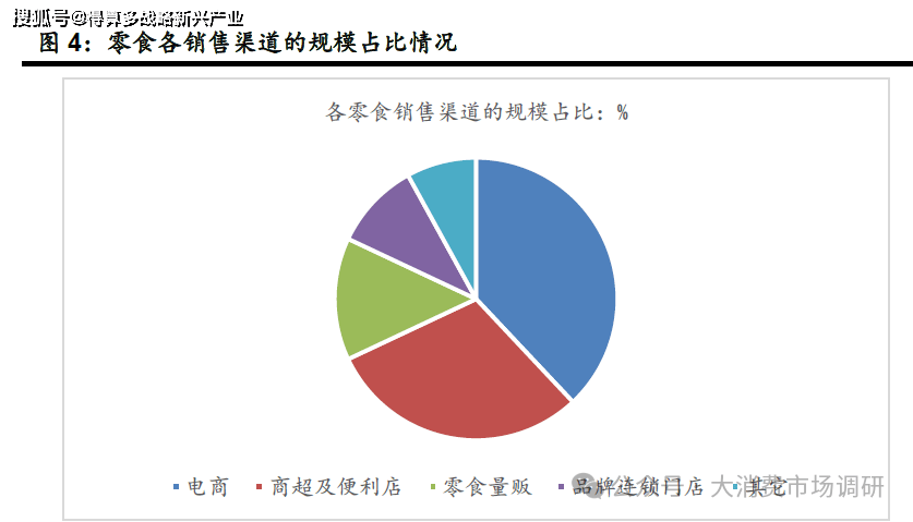 电商和线下超市仍是核心的销售渠道,在零食销售中合计规模占比达到68%。此外,零食量贩和品牌门店各占分销比例14%、10%。