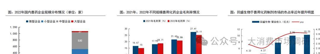 Ø 制剂格局集中逻辑:首先,由于大型兽用化药制剂企业存在规模优势且掌握原料产能,因此毛利率表现明显优于小型企业。其次,养殖规模化程度提升后,大型兽用化药制剂企业在产品矩阵、配套服务和渠道对接等方面的竞争优势开始凸显。综合来看,回盛生物等头部制剂企业近年正在依靠规模和服务优势不断抢占市场份额,兽用化药制剂行业格局持续优化,2022市场CR10较2021年提升8.37pcts。