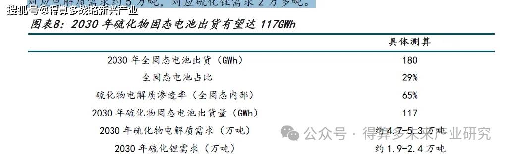 我们预计到2030 年,在全固态电池电解质中,硫化物电解质的市场份额达到65%。