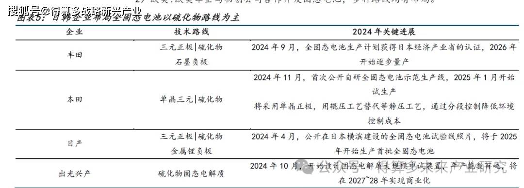 3)中国:根据2025 年2 月15 日第二届中国全固态电池创新发展高峰论坛上欧阳明高院士的演讲,当前全固态电池的技术路线,要聚焦以硫化物电解质为主体电解质,匹配高镍三元正极和硅碳负极的技术路线,以比能量400Wh/公斤、循环寿命1000 次以上为性能目标,确保2027 年实现轿车小批量装车,2030 年实现规模量产,具体的roadmap 为: