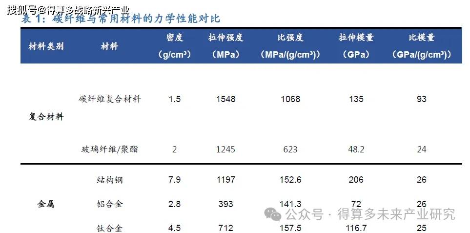 碳纤维下游应用领域广泛,包括航空航天、汽车零件、风电、体育用品、电子器件等多个领域,几乎所有的下游应用均为碳纤维复合材料制成的产品。在航空航天领域,碳纤维的应用包括飞机机身、机翼、尾翼;导弹弹体、火箭发动机壳体、卫星支架等,这可以使飞机等减重20%-50%,提升燃油效率与载荷能力。在汽车领域,碳纤维可以应用在车身结构、底盘、新能源电池箱体,降低能耗并提升安全性。并且碳纤维可以满足高端电子机械设备对强度与功能的双重需求,可以使用在制造电子器件外壳、通信部件、康复器械等。