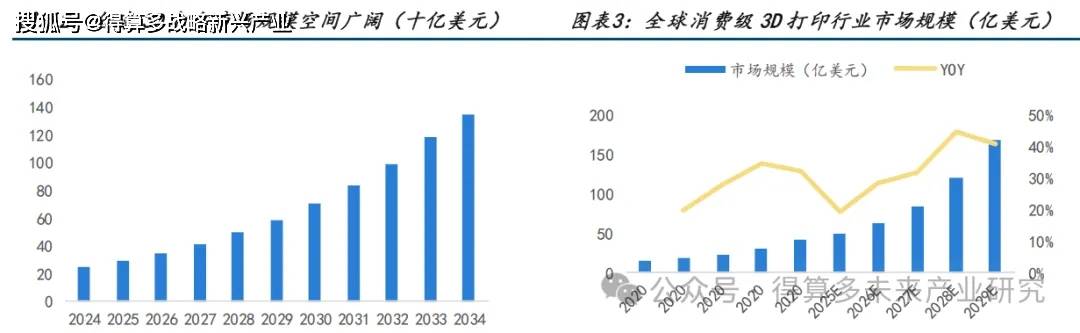 供需两侧驱动,3 D 打印市场方兴未艾 。根据 Precedence Research 的最新数据,全球 3D 打印市场规模在 2024 年达到246.1 亿美元 ,对应人民币约 1700 亿元 2024 2034 年 CAGR 有望达到 18.5%18.5%,行业正处于快速发展的黄金期 。 供给端, 3D 打印已在 工业场景完成技术积淀 AI 建模把设计门槛降至 一键级 消费级放量的基础设施就绪 。需求侧,短期催化因素为 2024 年 IP 经济与潮玩热潮叠加,正版手办预售期 长、缺货情况普遍 3D 打印正成为热门 IP 正版手办供不应求时 的个性化补位方案, 二次元及谷子经济受众 构成裂变式种子用户 。 中长期来看, 新消费世代对个性化、差异化、限量款需求刚性化, 3D 打印 逐步 升级为 个性生产力工具 持续抬升行业天花板 。