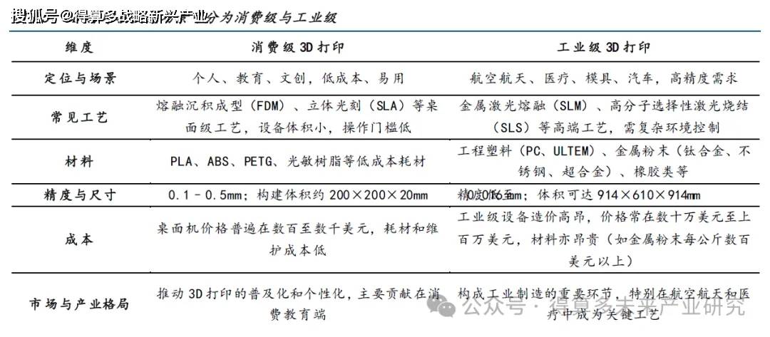 工业级3D 打印:从 高精尖 走向 千家万户 。 工业级 3D 打印创立之初主要应用于航空航天和医疗领域,随着技术日趋成熟以及新消费浪潮兴起,工业级 3d 打印 正释放新质生产力,下游迅速向广大消费品延伸并实现规模化应用。