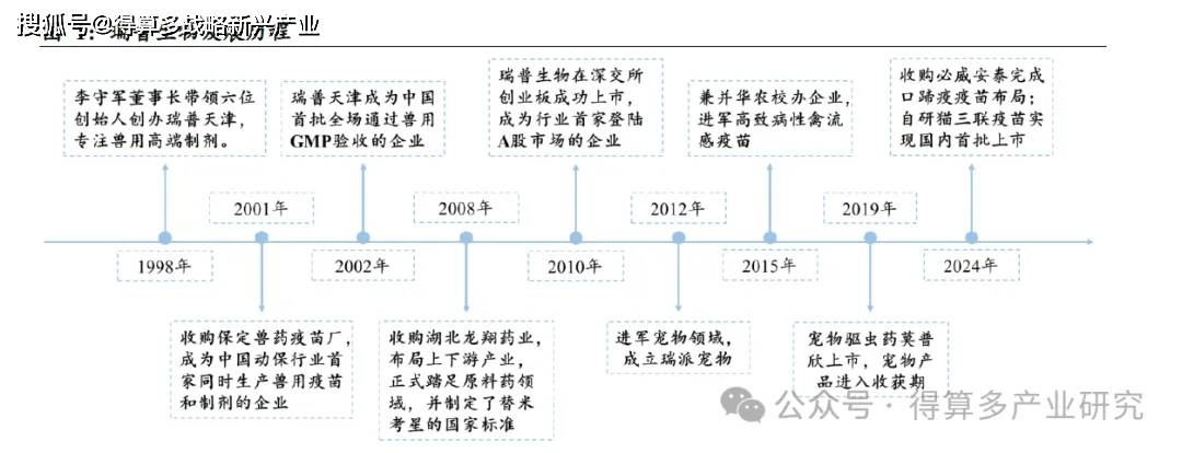 我国动保行业领军企业,宠物健康产业布局迎来收获期。瑞普生物自1998 年成立以来,一直专注于为经济动物及伴侣动物打造全生命周期的疫病防控与健康整体解决方案。历经27 年的发展,瑞普生物已拥有20 余家分子公司、12 个规模化生产基地,手握100 余项新兽药注册证书以及超过500 个产品文号,其产品更是远销欧美、东南亚等50 多个国家和地区。作为一家集生物制品、药物制剂、药物原料、饲料添加剂四位一体的动物保健企业,瑞普生物是中国规模最大、产品种类最全的动物保健产品生产商与服务商之一,同时也是国家重大动物疫病(高致病禽流感、口蹄疫)防控疫苗的定点生产企业。2024 年,公司成功完成了对必威安泰的收购,进一步完善了公司在口蹄疫疫苗业务领域的布局,同年还实现了自主研发的猫三联疫苗在国内首批上市,有望打破现有市场格局,为公司带来新的发展机遇,引领行业走向新的发展阶段。