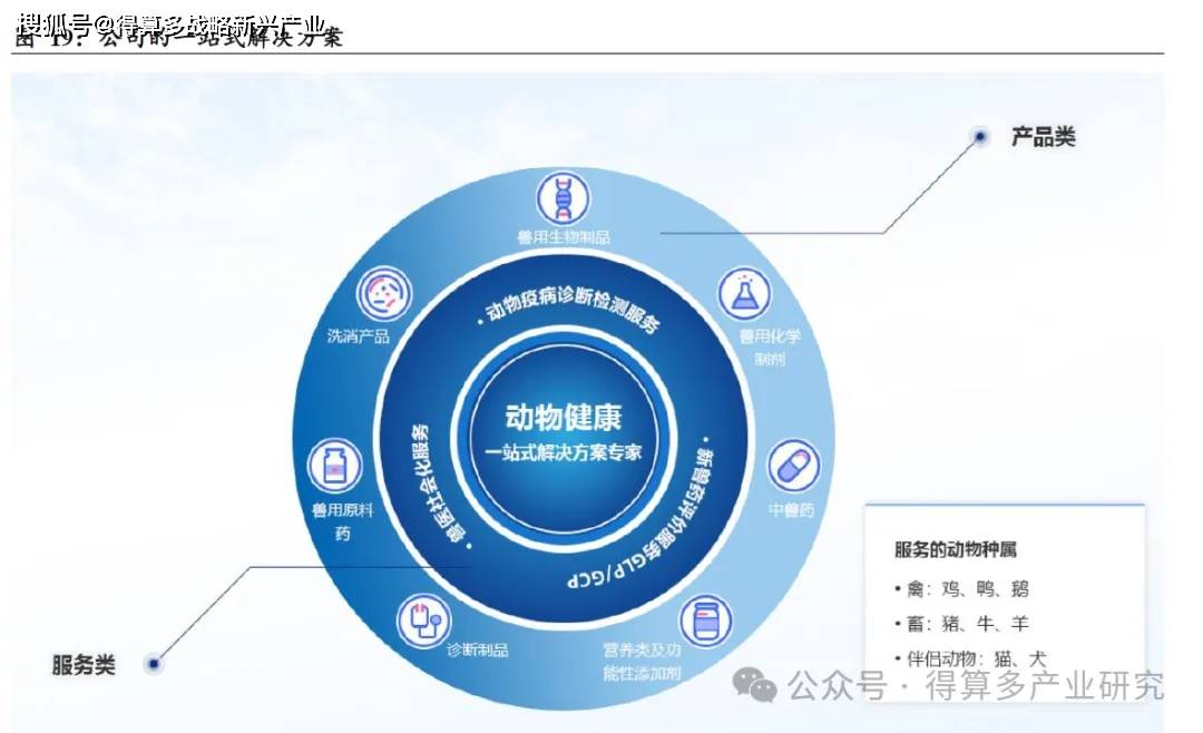 公司致力于为动物健康提供全方位、一站式的产品与服务解决方案,实现产品与服务的深度融合与协同增效。公司构建了丰富多元的产品线,涵盖兽用生物制品、化学制品、中兽药、营养及功能性添加剂、诊断制品、原料药以及洗消产品等多个类别,能够满足不同场景下的动物健康管理需求。在服务体系方面,公司构建了完善且专业的服务架构,能够提供精准的动物疫病诊断检测服务,凭借专业技术与先进设备,深入剖析疫病情况,为疾病防控提供科学依据;开展严格规范的新兽药评价服务(GLP/GCP),从质量与安全性两个维度把控兽药品质,确保产品可靠;积极推进兽医社会化服务,将专业兽医支持拓展至更广泛的区域,让优质服务触达更多用户。在服务对象上,公司全面覆盖禽类(鸡、鸭、鹅)、畜类(猪、牛、羊)以及伴侣动物(猫、犬),根据不同动物的生理特点与健康需求,精准匹配产品与服务。通过产品与服务的有机结合,公司能够为各类动物提供量身定制的一站式解决方案,全方位守护动物健康,助力养殖业与宠物行业的高质量发展。