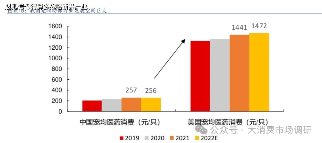 我国宠物动保行业增长空间巨大,从我国宠物每只医药消费金额来看,跟美国宠物动保行业相比,至少还有3倍增长空间。