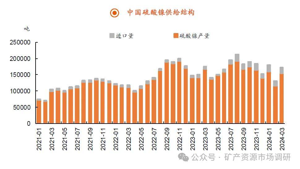 进口主要集中在上游环节 。 当前国内硫酸镍产能结构主要以 HPAL 为主