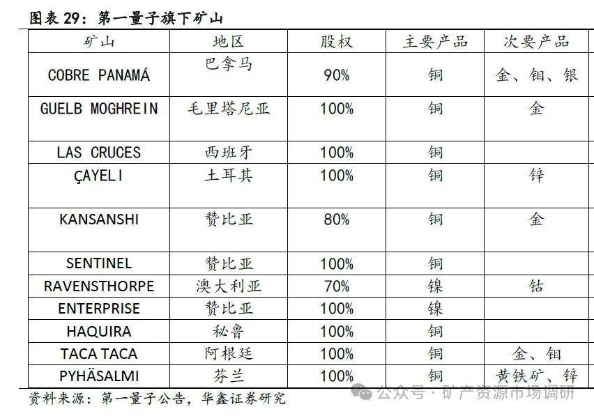 第一量子公司是一家全球性铜业公司,生产铜精矿、阴极铜和阳极铜,并拥有镍、金和钴的库存,在多个国家经营长寿命矿山,主要经营活动为矿产勘探、开发和采矿。