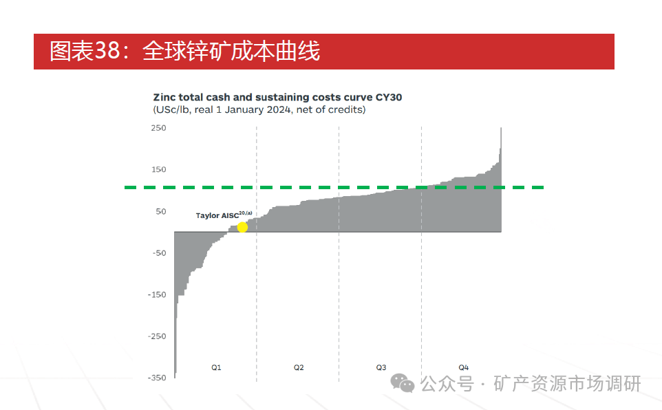 ◼ 按照4月5日LME锌锭收盘价2622美元/吨,折合约119美分/lb,位于成本曲线75%分位左右。
