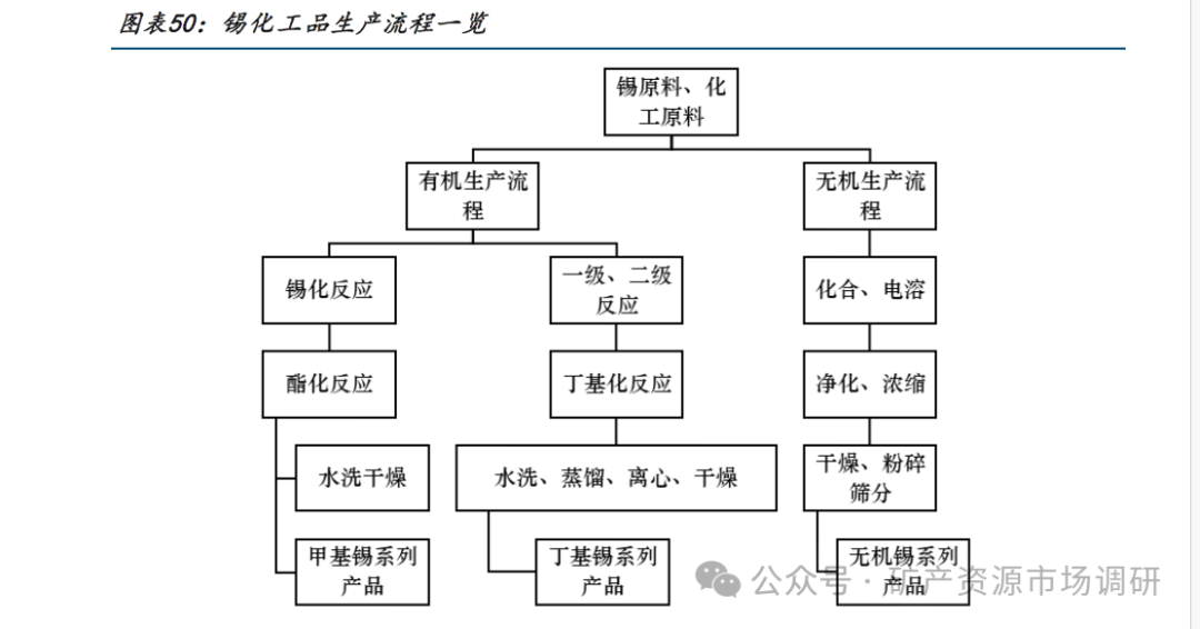 1)锡在化工方面主要用于生产锡的化合物和化学制品。锡的有机化合物主要用作木材防腐剂、农药等,锡的无机化合物主要用作催化剂、稳定剂、添加剂和陶瓷工业的乳化剂。有机锡化工用品主要包括甲基锡和丁基锡两大类产品,用于 PVC 制品、工程物料、医药食品包装、玻璃镀膜、医药中间体、轮船涂层、低辐射玻璃、聚氨酯催化剂、承压玻璃容器增强喷涂、汽车电泳漆催化剂。无机锡化工用品 主要包括硫酸亚锡、氧化亚锡、二氧化锡等七大类产品,用于酸性电镀、蓄电池、电路板、液晶显示器、化学反应还原剂、染发膏添加剂、电子元器件镀锡、高端阻燃等方面。