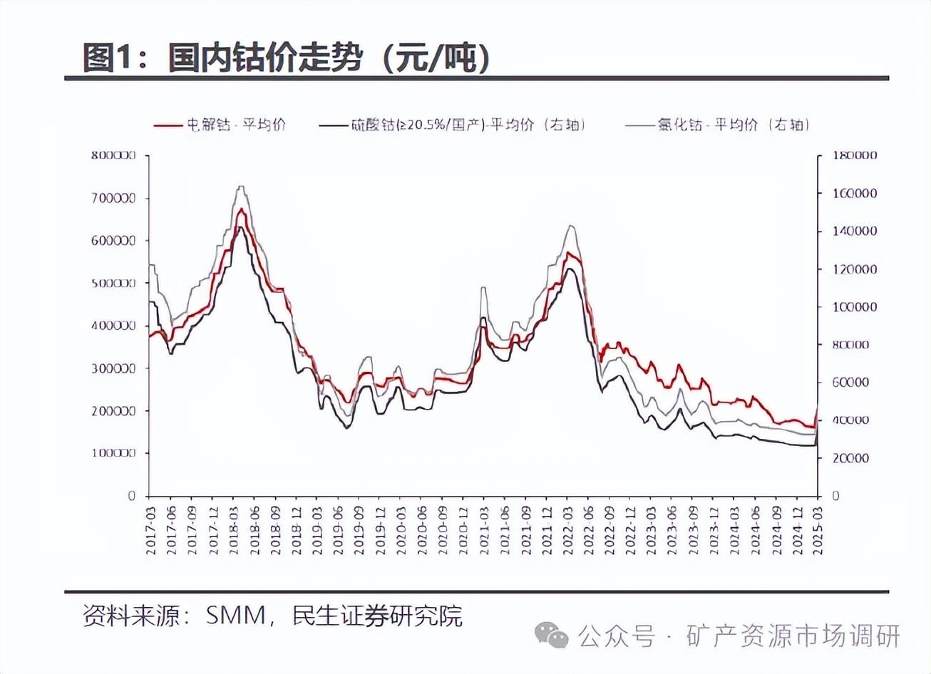 刚果金暂停钴原料出口,挺价态度坚决。2025年2月22日,刚果金战略矿物市场监管和控制管理局(ARECOMS)发布公告称采取临时暂停出口措施,以应对全球钴市场供应过剩的局面。公告主要内容包括:1)决定立即生效,暂停钴出口四个月,禁止从刚果金出口任何钴矿产品,无论是工业的、半工业化的、小规模或小型矿山、或手工的;2)在三个月内对此项措施进行评估,之后可做出新的决定,在适当情况下,修改或终止该临时措施;从刚果金政府的诉求看,钴价持续下跌影响了钴矿对国家税收等经济贡献,计划通过限制原料供应掌握定价权,政府挺价态度强烈,我们预计未来刚果金的政策大概率演绎成配额制,钴价中枢有望明显上移。