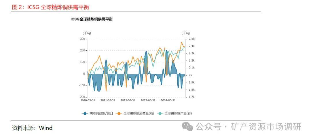 据ICSG数据显示,近年来全球铜供需一直处于紧平衡状态,且2023年多数月份精铜均存在缺口,至2024年2月供给不足的局面略有改善,但2024年9月以来精铜市场整体而言处于供不应求状态,供需矛盾突出,预期未来全球市场精铜供给仍然存在短缺,支撑铜价走强。