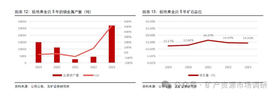 根据上一次配额流向情况与23年 资本开支计划,预计 短期锑供应 较难超预期。 1 2023年配额为疫情后累积的锑矿的 一次性 集中释放; 2)极地黄金旗下奥林匹亚金锑矿 山 22/23年矿石品味有所下降; 3 2023年 2月 17日,俄罗斯极地黄金公司完成了当年锑矿的配额流向,预计涉及 8万吨毛吨矿(锑含量 20%),折合 1.6万金属吨。 但 配额流向后的实际发运到国内的精矿也面临卢布结算问题,预计实际到国内锑矿在 8万吨基础上有所折扣。