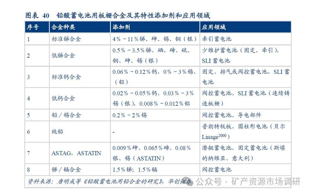 根据我们测算24 年铅酸蓄电池锑消费占比约11%,预计2025 年锑需求量1.88 万吨。锑多用于制造铅酸电池的正极板栅和导电零件。锑可以增加合金硬度,含锑铅酸电池具有大电流放电性能好、稳定性、安全性强等优势,可在军工、核工及电控等行业用作后备电源,是制备铅酸蓄电池板栅的典型材料。