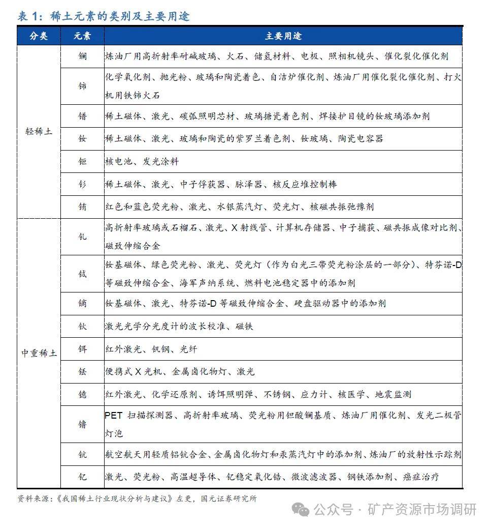 按稀土硫酸盐溶解度的差异,可以分为轻稀土(锦组稀土,包括锏、饰、错、钦、钜、够、销)和中重稀土(钯组稀土,包括钊、钺、镝、钦、饵、钰、镜、籍、铳、钯)。这两类稀土无论在储量分布上还是在终端应用方面都有显著不同,轻稀土在应用领域上较重稀土更为广泛、用量更大;而中重稀土则集中应用于航空航天、军事国防及新材料合成等高科技领域,较轻稀土更稀缺、单价更昂贵。